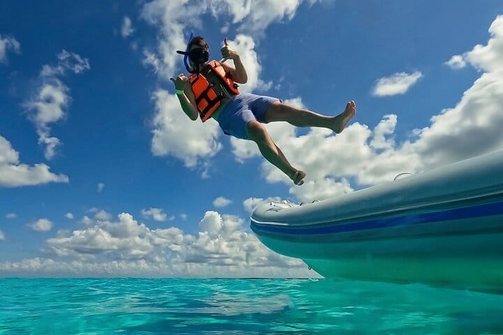 The adventure begins when you board our high-speed boat and embark on the most exciting discovery of the Cozumel Reef National Park, part of the largest barrier reef in Mesoamerica and considered one of the best places to snorkel in the entire Caribbean.