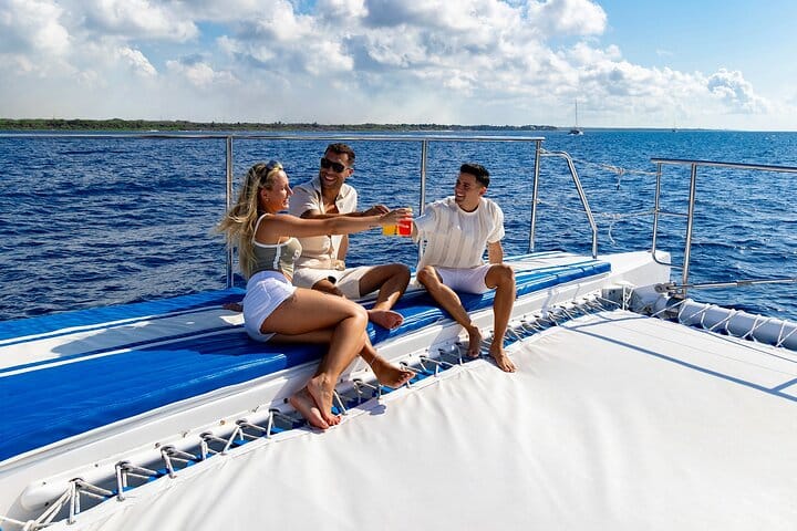 This is Riviera Maya's ultimate day-sailing adventure. Aboard a luxurious sailing catamaran, you'll explore some of the most beautiful offshore locations along the stunning Riviera Maya coastline. You'll sail to the most spectacular reef in the area and stop for some fun in the water enjoying various activities. Relax on deck in the warm, tropical sun and enjoy an open bar and delicious lunch as you sail across the blue Caribbean waters under the power of the wind.